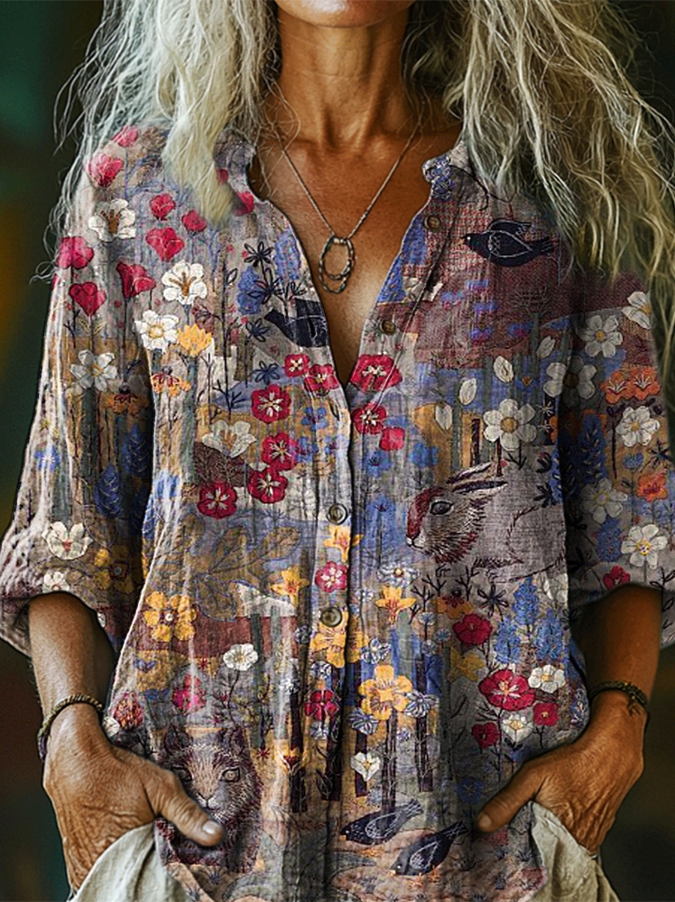 Women's Vintage Floral Print Casual Cotton Shirt