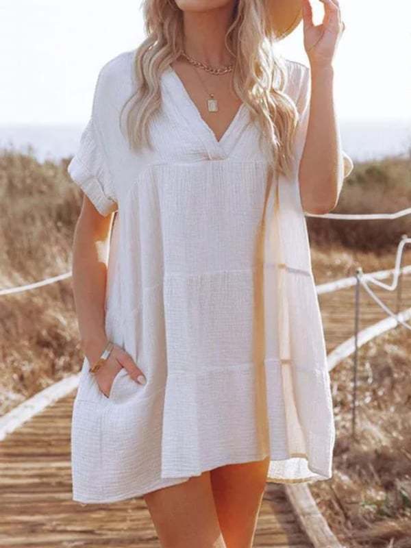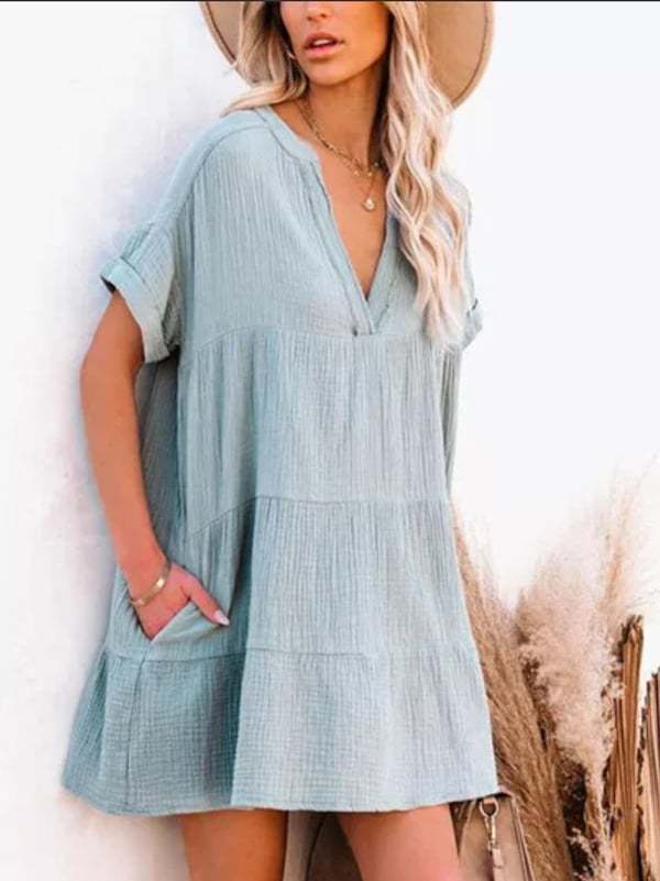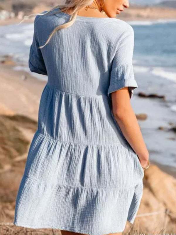Cotton-linen paneled pleated loose-fitting fashion dress