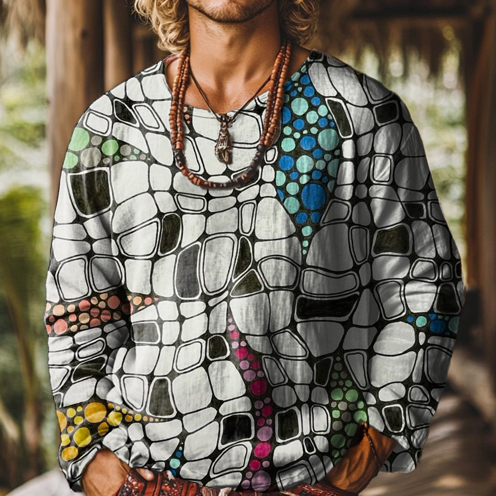 Men's Art Painting Fun Color Graffiti Print Round Neck Long Sleeve