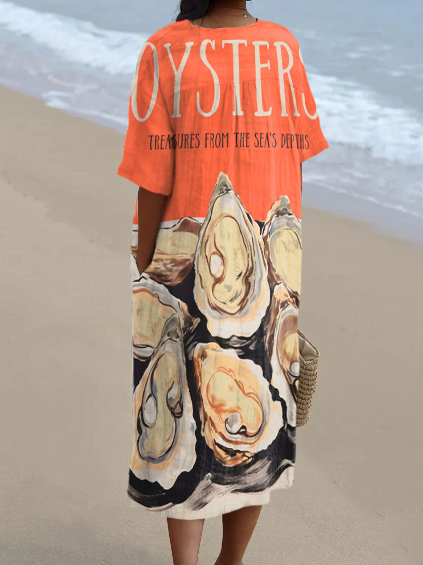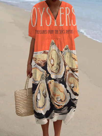 OYSTER Treasures From The Sea's Depths Print V-neck Dress
