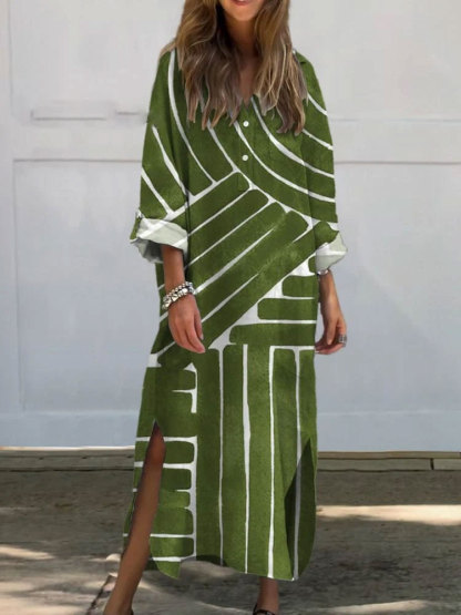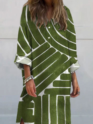Simple Geometric Pattern Printed Women's Pocket Cotton Dress