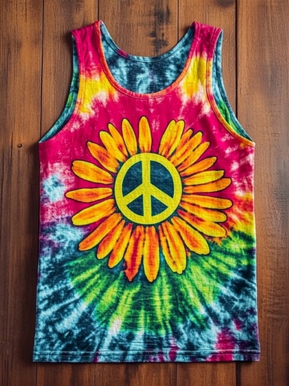 Unisex Tie Dye Daisy Hippie Peace Art Graphic Print Crew Neck Cotton Tank Top