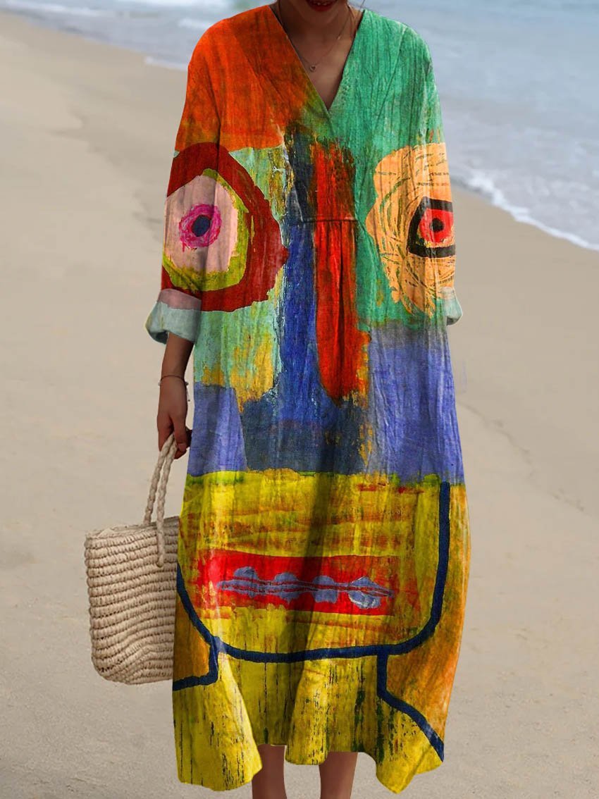 Women's Vintage Abstract Figure Painting Art Print Casual Dress