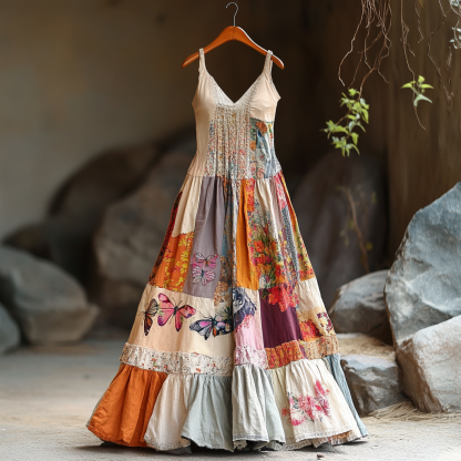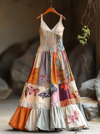 Women's Vintage Bohemian Patch Art Pattern Comfort Dress