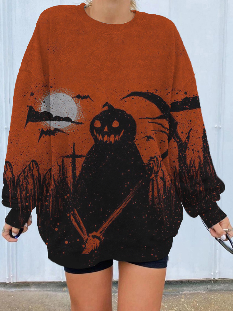 Women's Vintage Halloween Pumpkin Ghost Art Sweatshirt