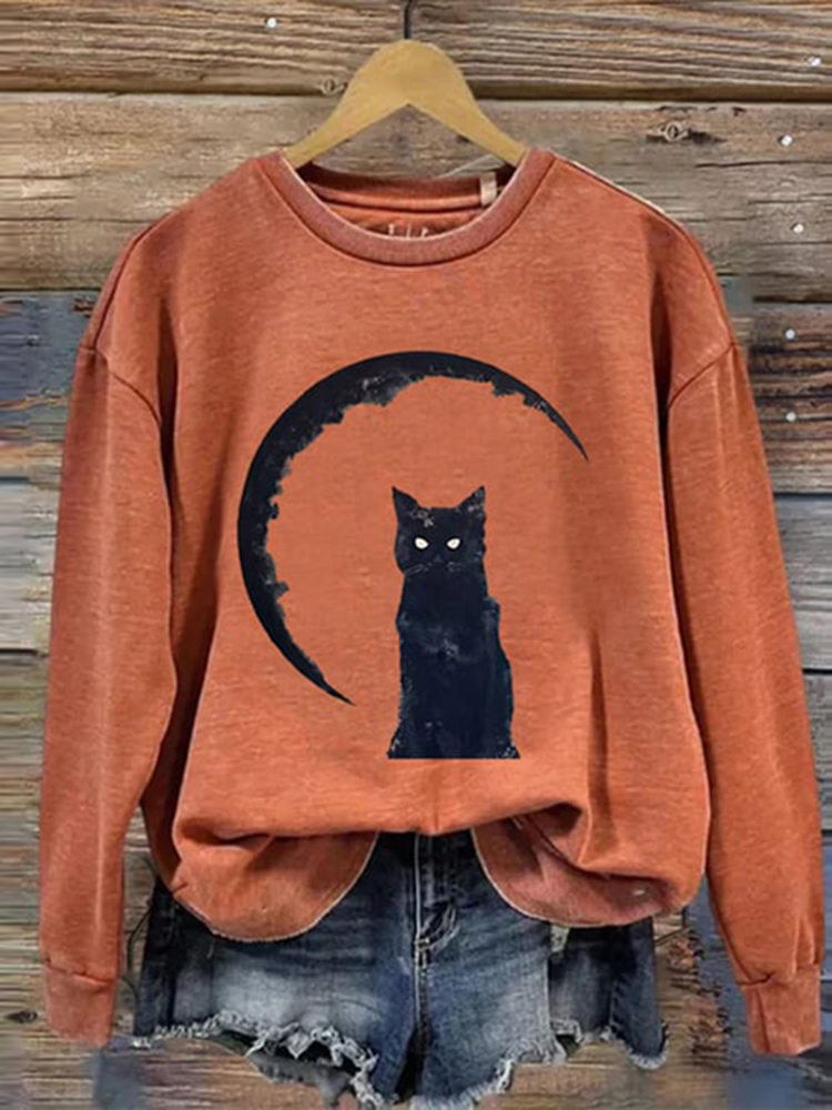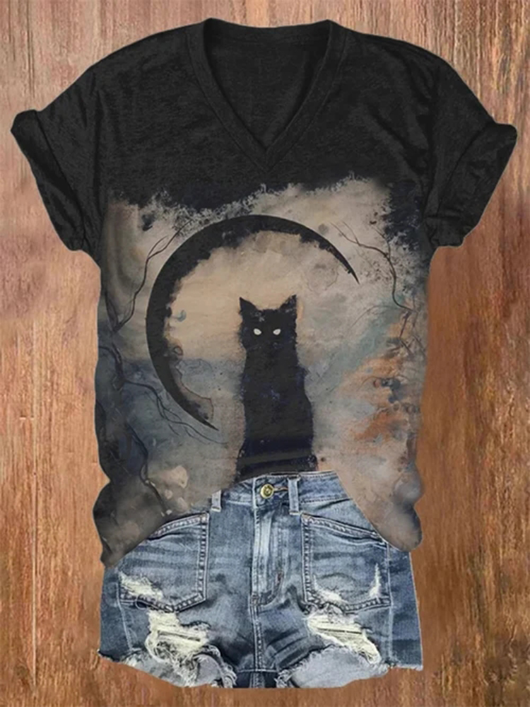 Halloween Black Cat With Bloody Knife T Shirt