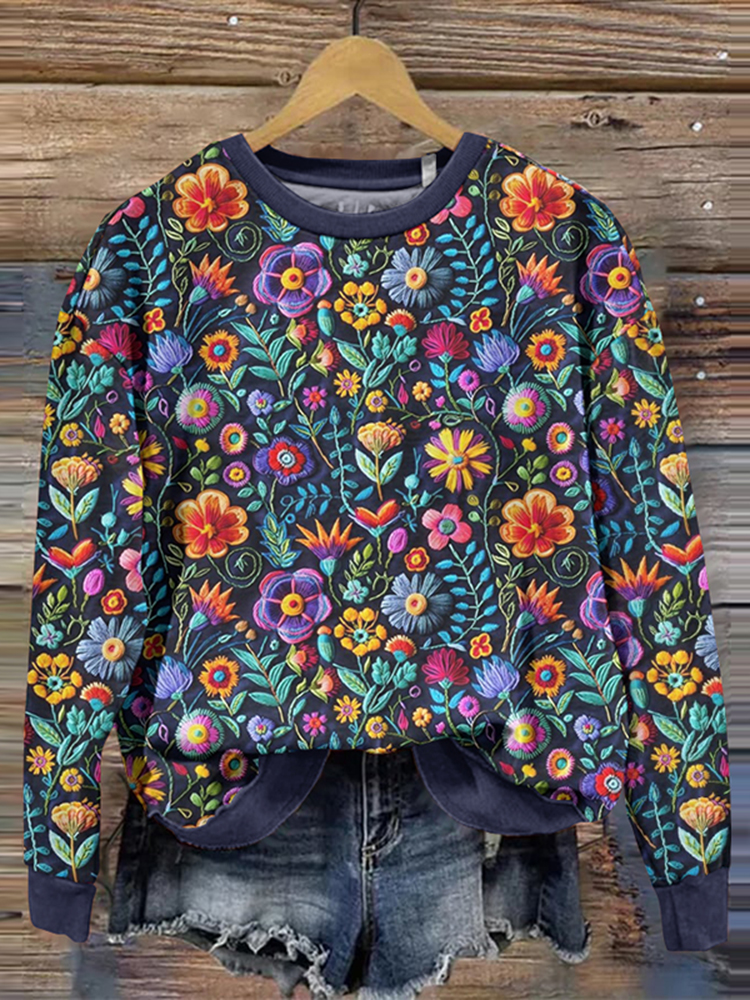 Mexican Day Of The Dead Floral Embroidery Art Sweatshirt