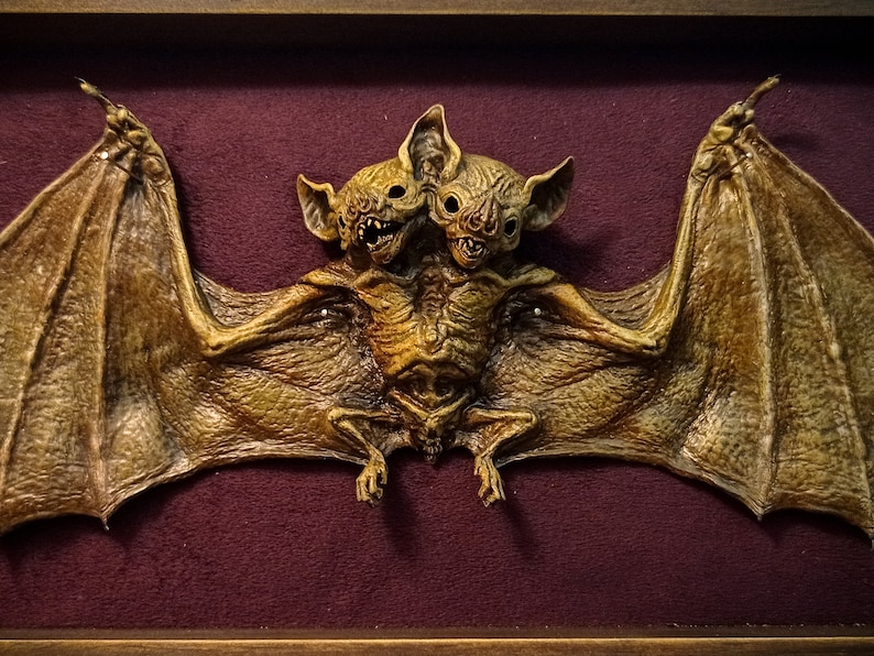 💀LOWEST PRICE IN HISTORY💀Two Headed Bat Shadow Box Display Taxidermy Oddity
