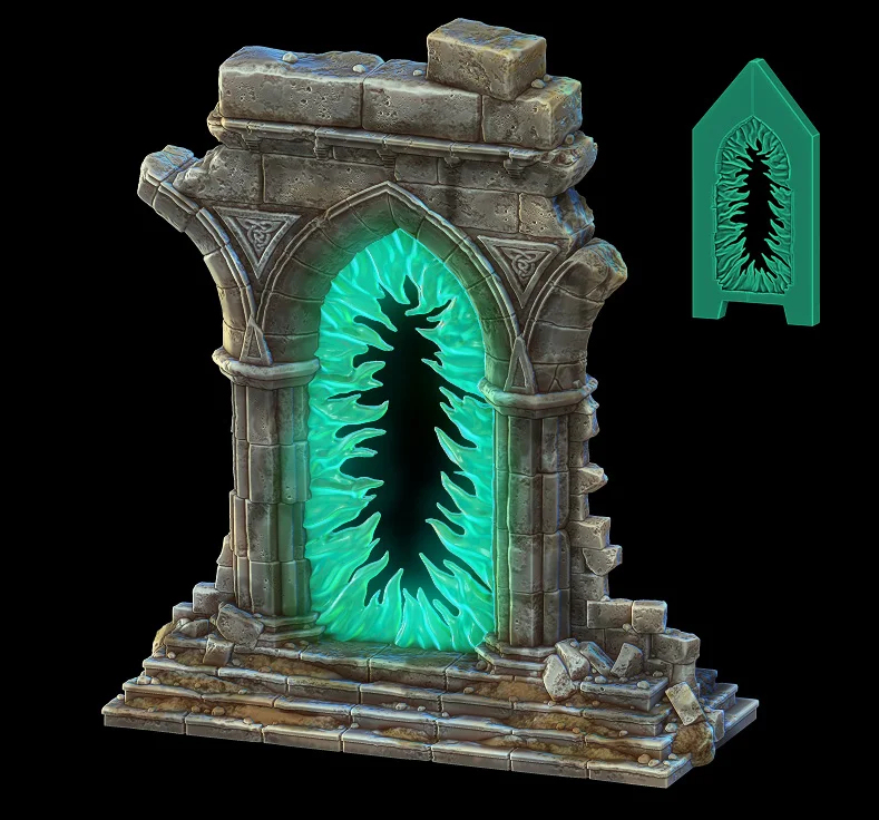 No lights or portals are included in the package. The prop makes an excellent statement piece, but is also large enough to be used for cosplay. The prop is hefty and durable, with thick walls minimizing the areas of infill.