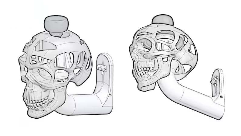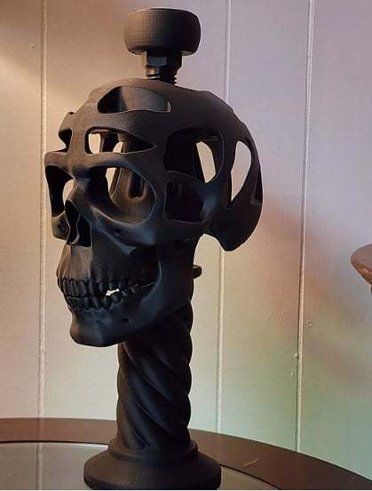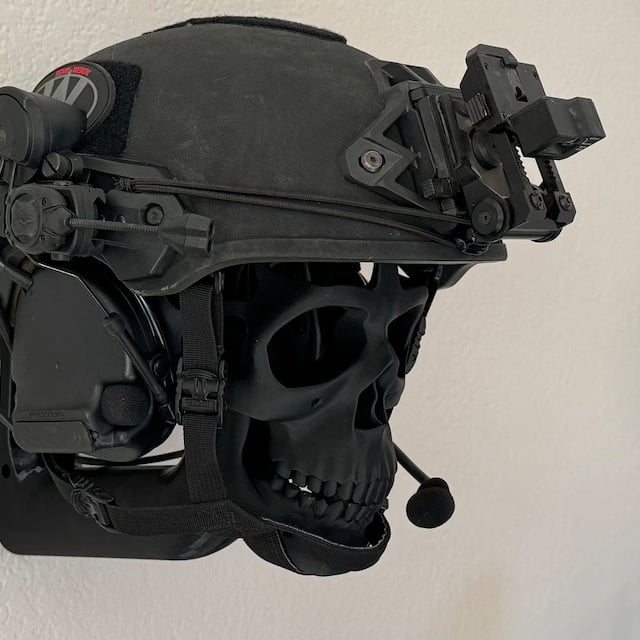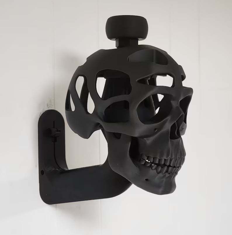 This is a unique 3D helmet display stand. The skull accessory is included, but is removable. Uniquely showcase your headgear when not in use, be it tactical, sport, or collectible! A great addition to your home office, gaming set-up, or even garage.