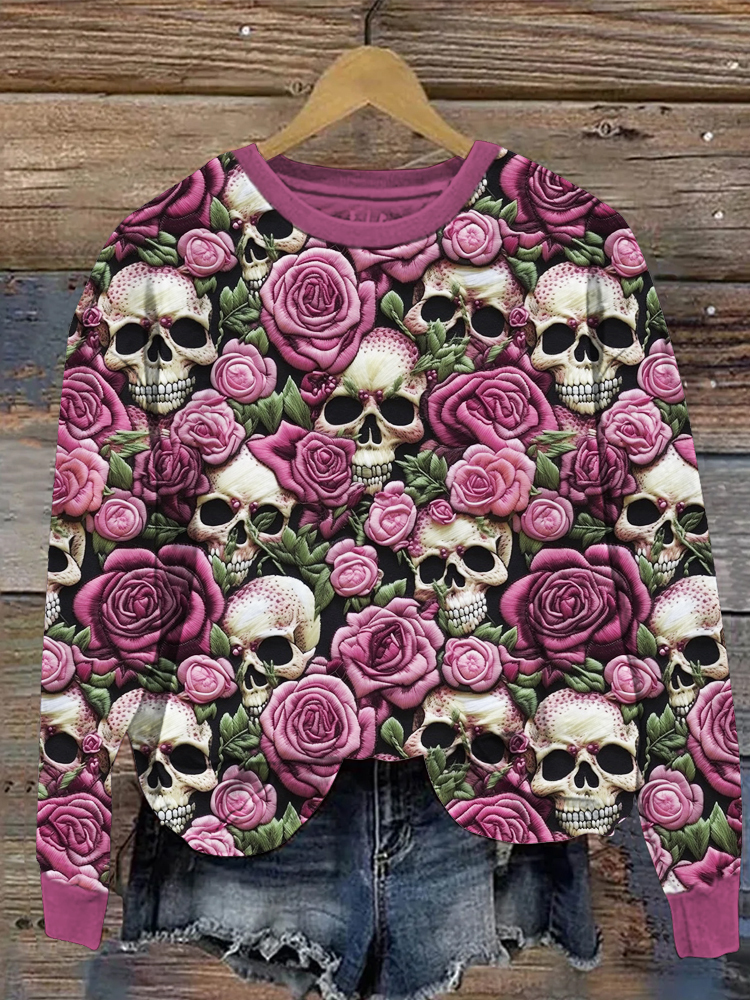 Day Of The Dead Skull & Flower Embroidered Casual Sweatshirt