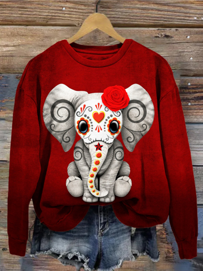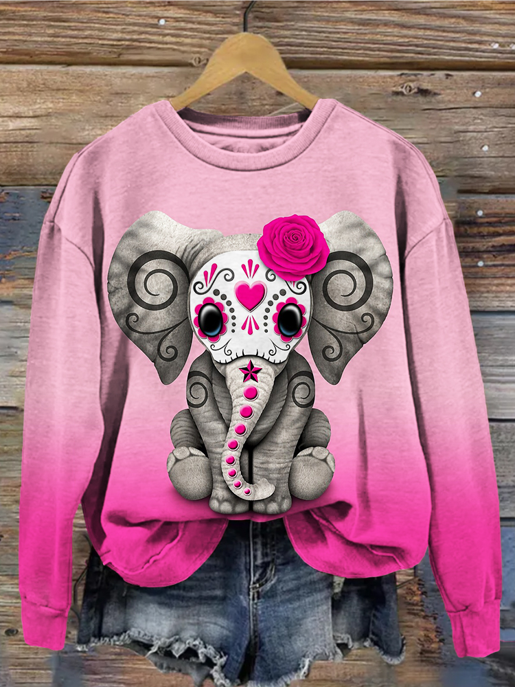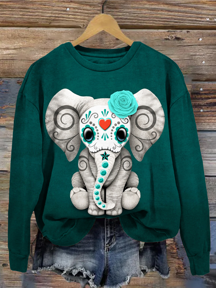 Day of the Dead Sugar Skull Baby Elephant Art Sweatshirt