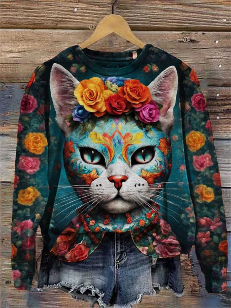 Day of the Dead Sugar Skull Cat Art Sweatshirt