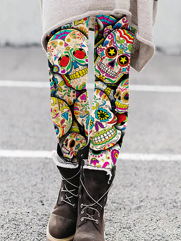 Day of the Dead Sugar Skull Collage Art Casual Leggings
