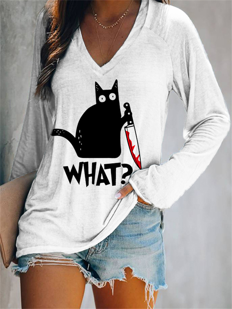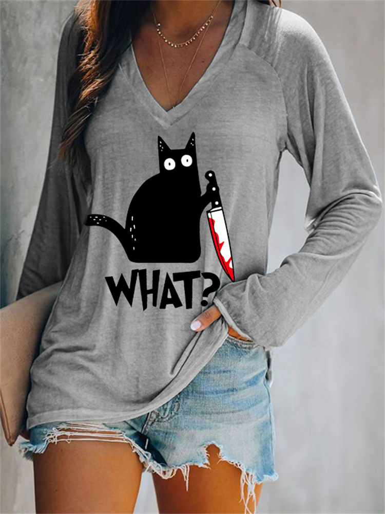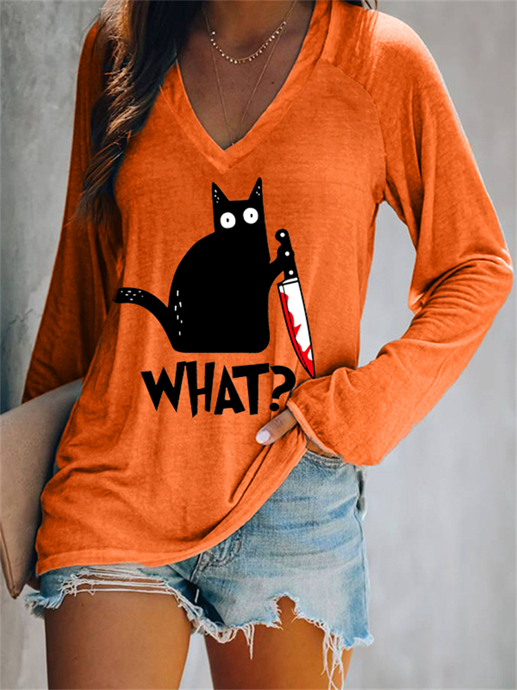 Halloween Black Cat With Bloody Knife T Shirt