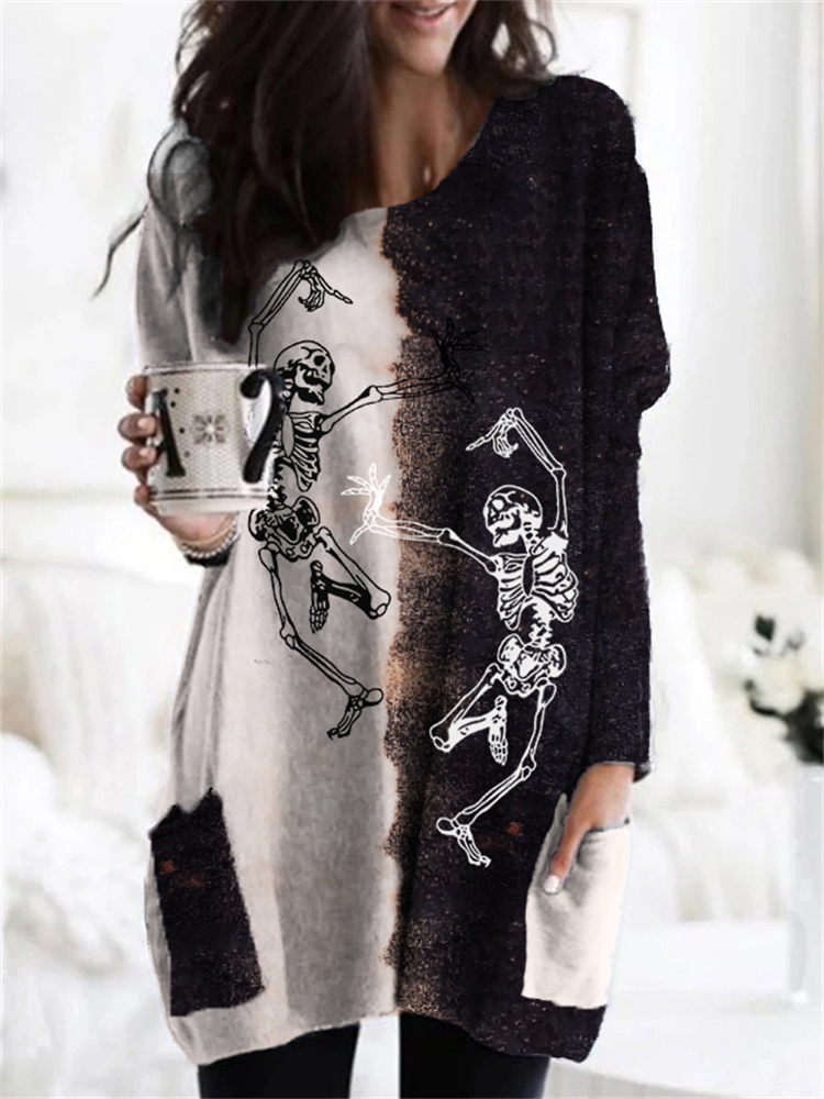 Halloween Dancing Skeletons Contrast Bleached Tunic