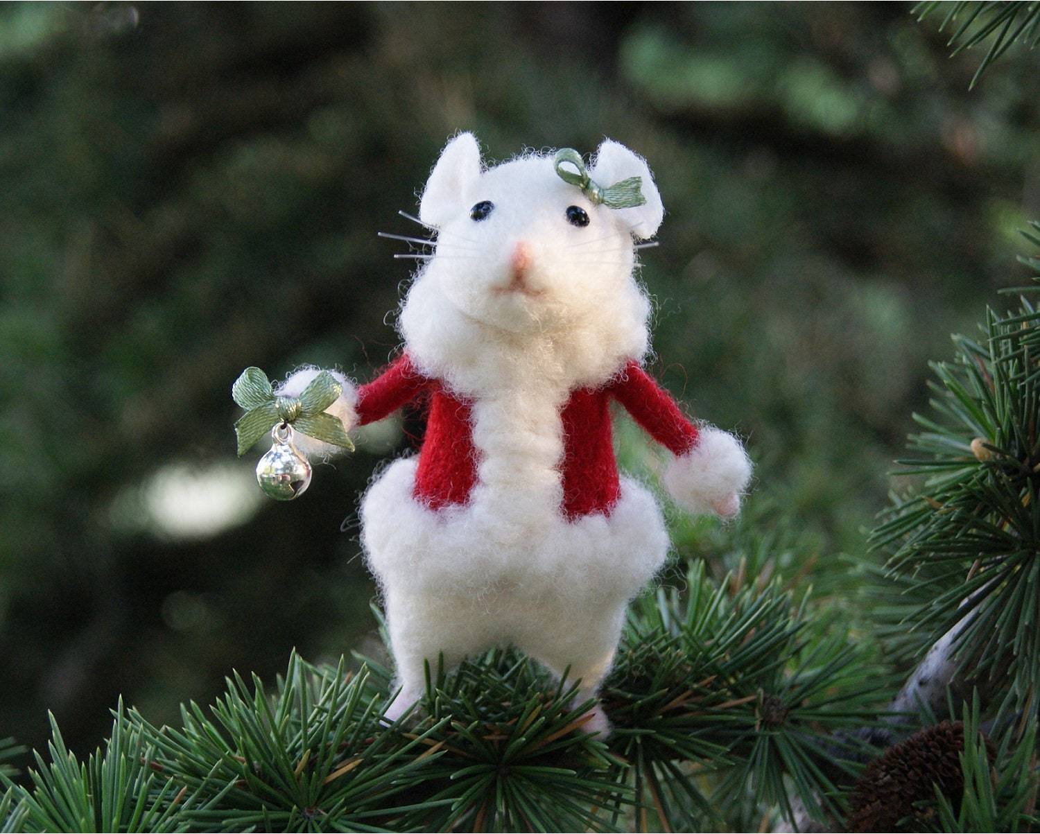 This little Christmas mouse is so cute and joyful. He holds a beautiful Christmas wreath in his paw and he has a Christmas hat on his head.