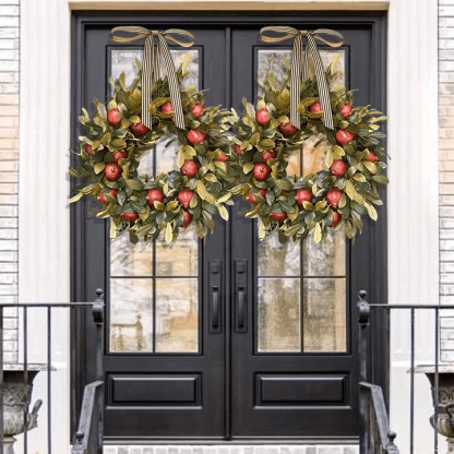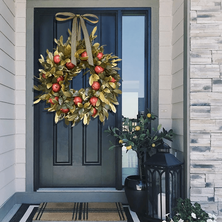 This Fall Pomegranate Farmhouse Wreath is so beautiful that my neighbor took it away when I wasn't looking and hung it on his door? At Whimsical Doors, we strive to bring a new sense of purpose to our clients' home décor. A curated collection inspired by nature, whimsical design and seasonal celebrations. "Why not let me help you with your decorating this season? How wonderful to come home to a beautiful sharp display of fall colors on your front door or in your home! Even dreary days become brighter when you can see such a lovely reminder of the warmth and beauty of the season. Just hang and enjoy!" Focus: Handcrafting Materials. Outdoor realistic artificial pomegranates, artificial leaves. 🌷 Size. Dimensions are approximate, tip-to-tip for leaves, stems, vines, grass or bows > tip-to-tip as shown. 15 inches high by 6 inches deep We have US/UK/Australia warehouses. We will ship from Landrum, South Carolina. Available year round. Versatility to cover indoor/outdoor Features. This wreath is the perfect fall decoration with a beautiful handmade fall bow. It would make a beautiful gift for any occasion or special someone. *If hanging outdoors, a covered area is recommended to protect the wreath from inclement weather and other elements. Perfect gift. This beautiful wreath is the perfect gift for a friend or family member!!!