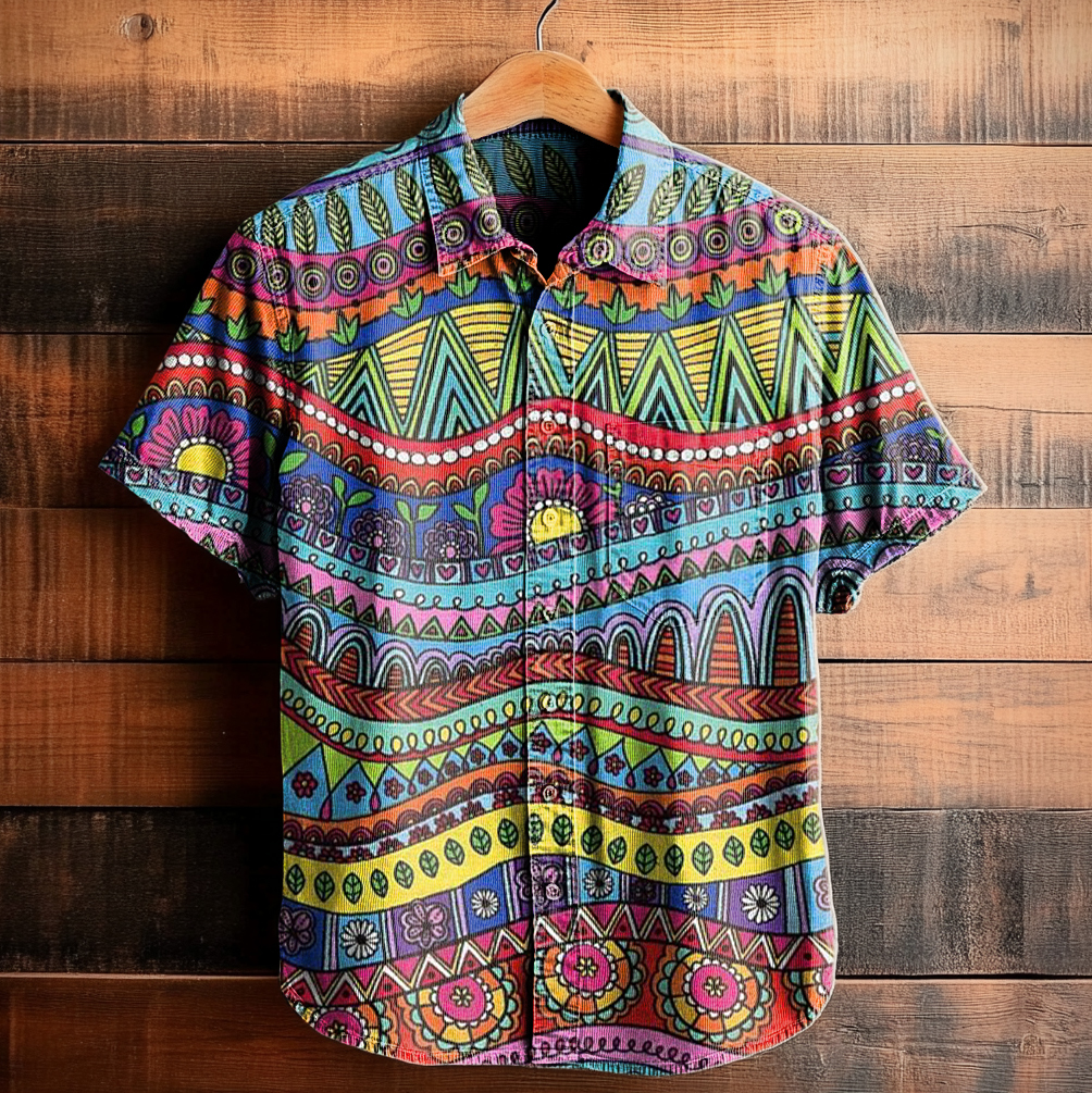 Men's Art Painting Colorful Ethnic Fun Printed Lapel Short Sleeve Shirt