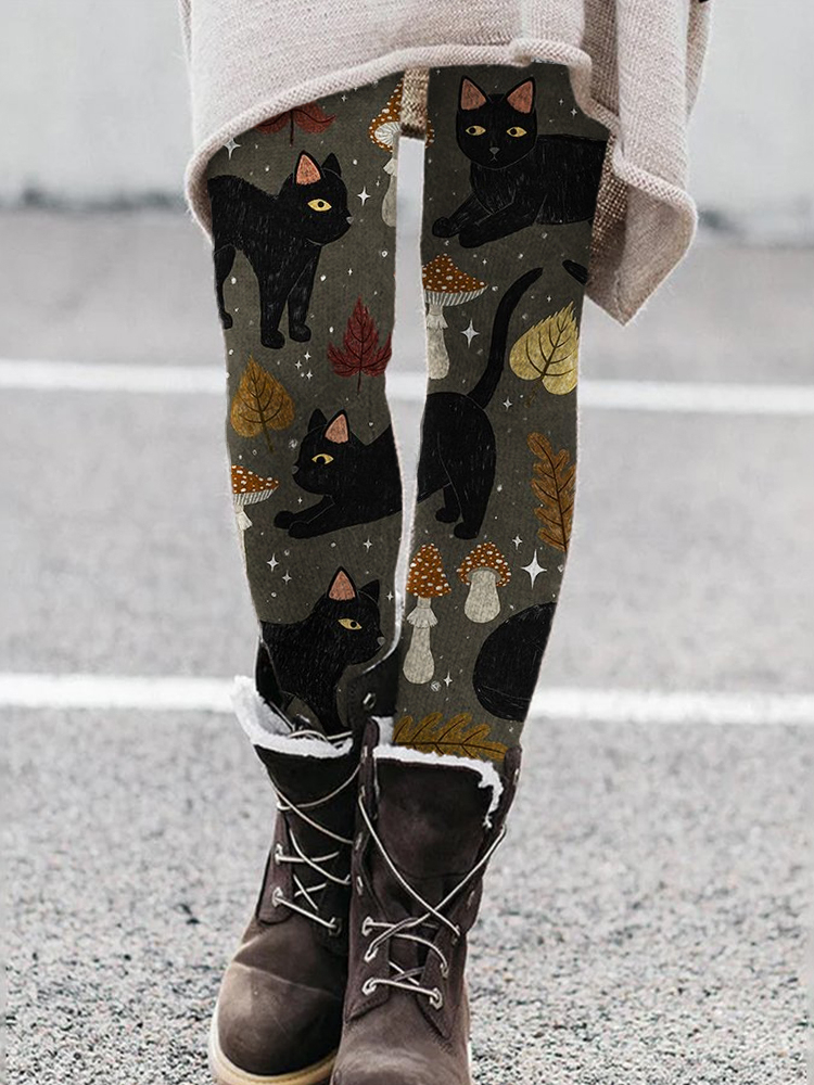 Mystical Black Cats & Mushroom Fall Inspired Leggings
