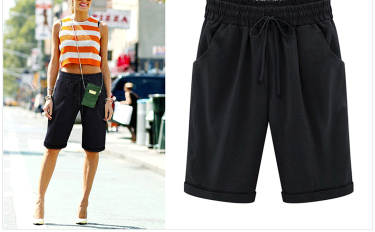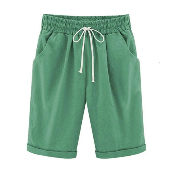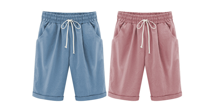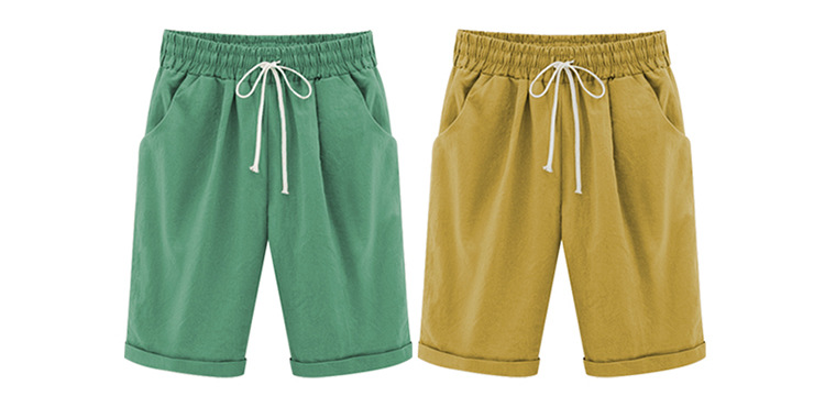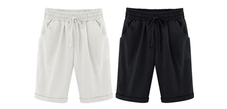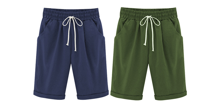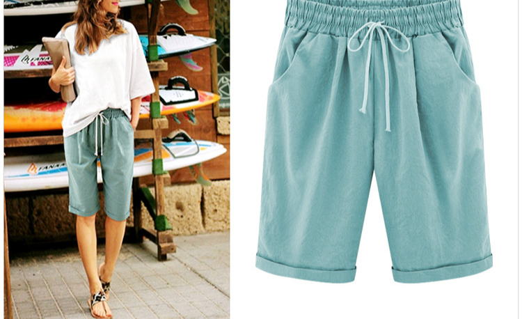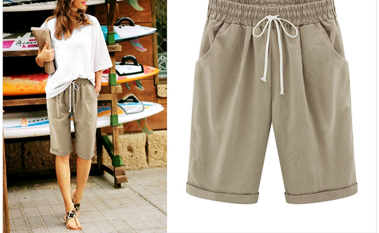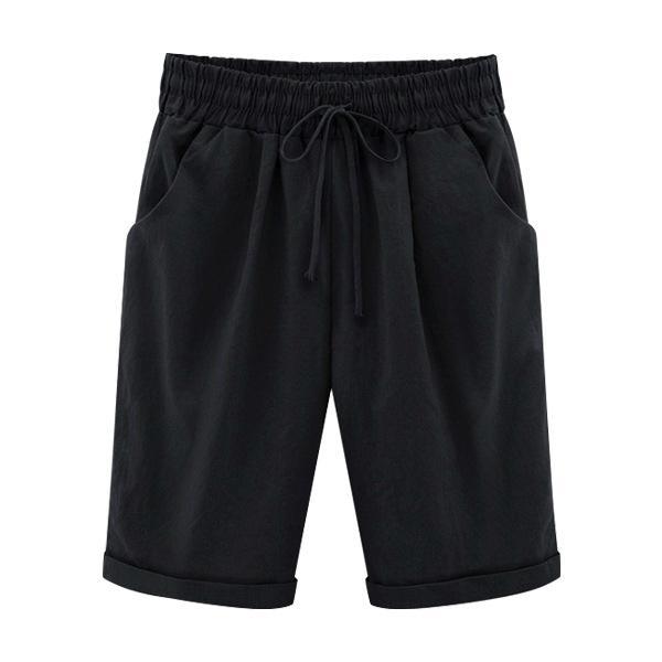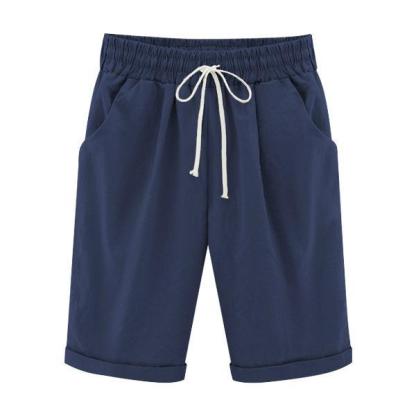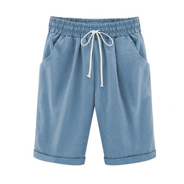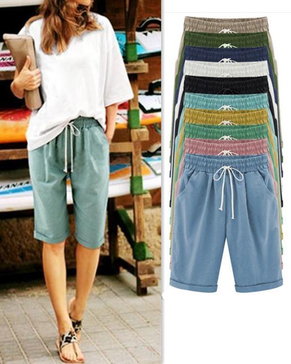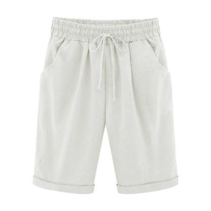 Summer Shorts Lace Up Elastic Waistband Loose Solid Pants