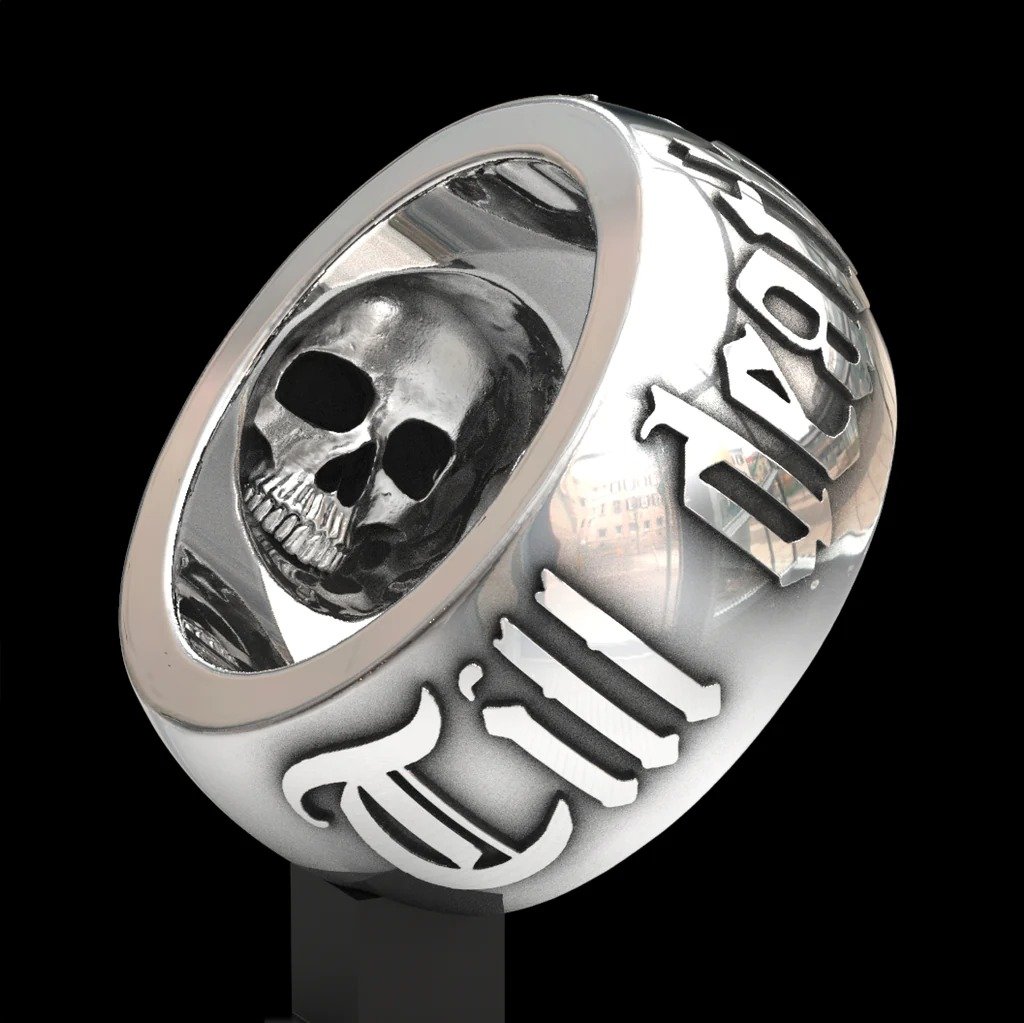 Till Death Do Us Part Skull Ring is crafted from sterling silver and is intricately designed with a great deal of creativity and dedication by our skilled artisans. This unique skull ring is crafted in a contemporary style while commemorating an eternal love.