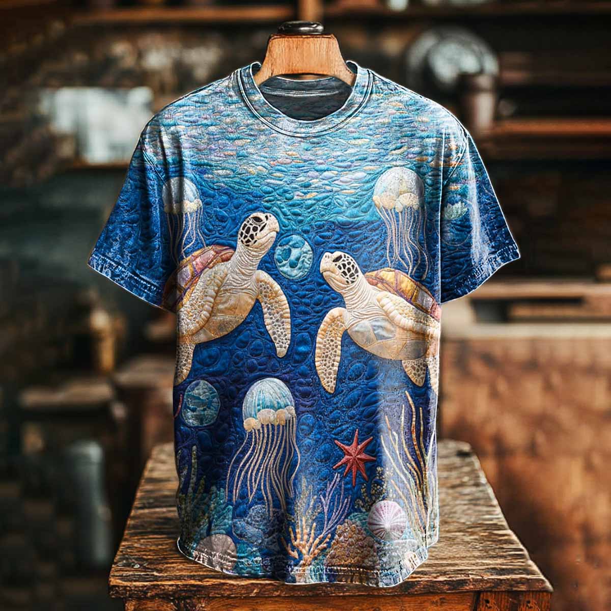 Unisex Jellyfish Turtle Art Print Casual Loose Short Sleeve T-Shirt