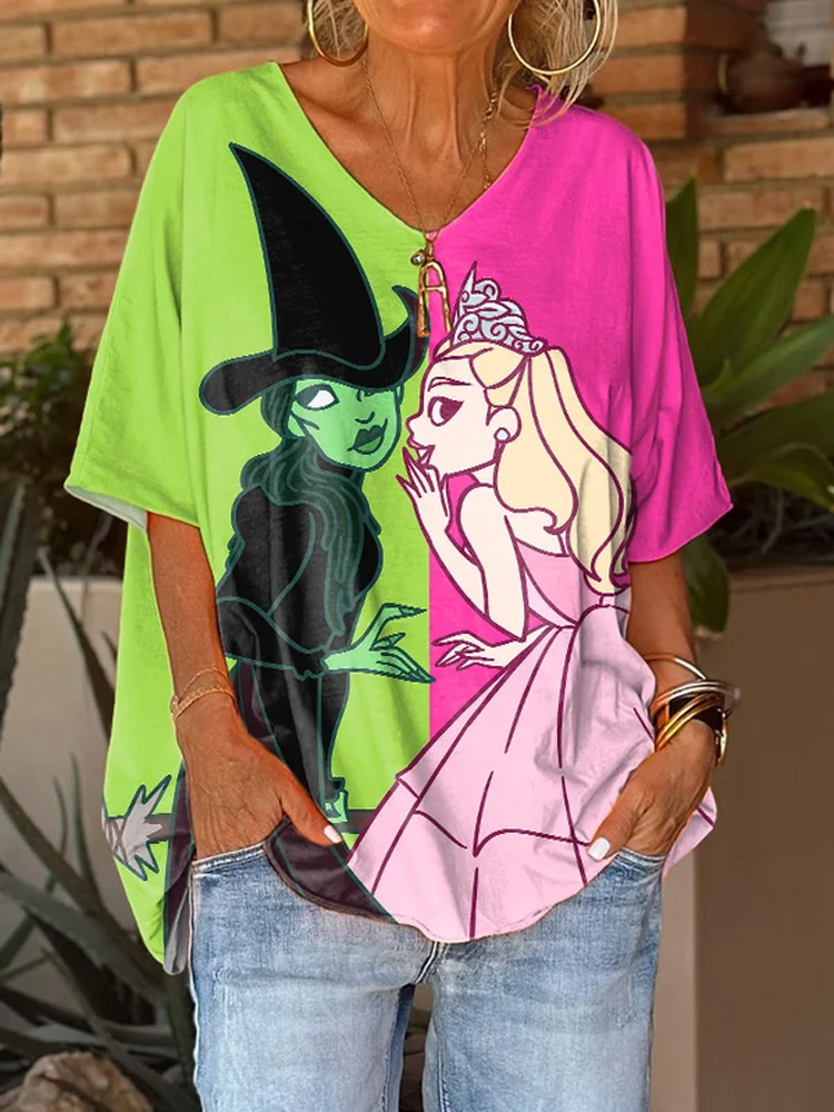 V-Neck Retro Halloween Wicked Print T-Shirt