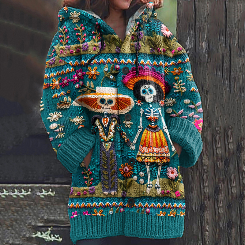 Vintage Mexican Catrina Day Of The Dead Sugar Skeleton Couple Inspired Print Women's Sweater