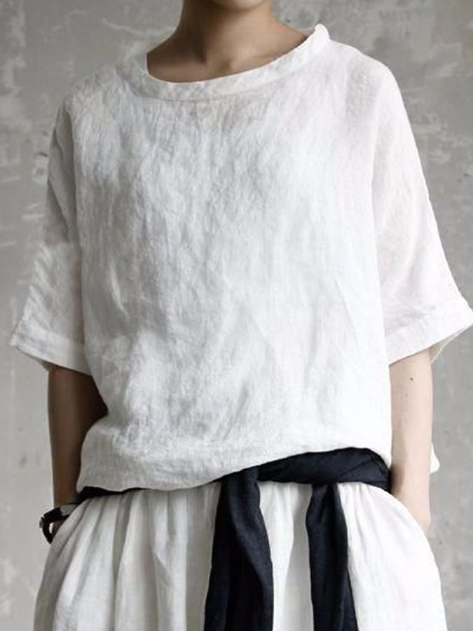 Women's Casual Elegant Short Sleeve Cotton And Linen Shirt