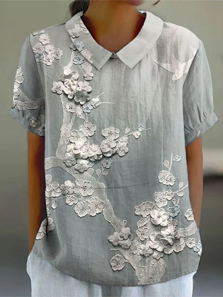 Women's Casual Lace Floral Embroidery Print Shirt