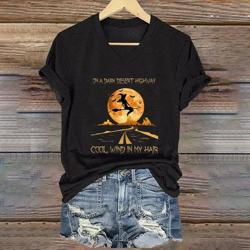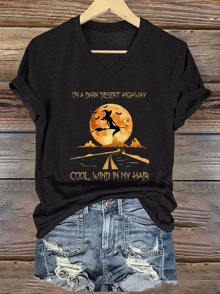 Women's Halloween On A Dark Desert Highway Cold Wind In My Hair Printed Casual Tee