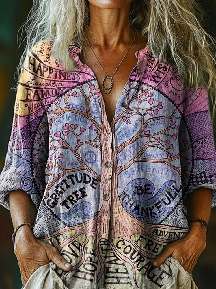 Women's Hippie Peace Art Print Casual Cotton Linen Shirt