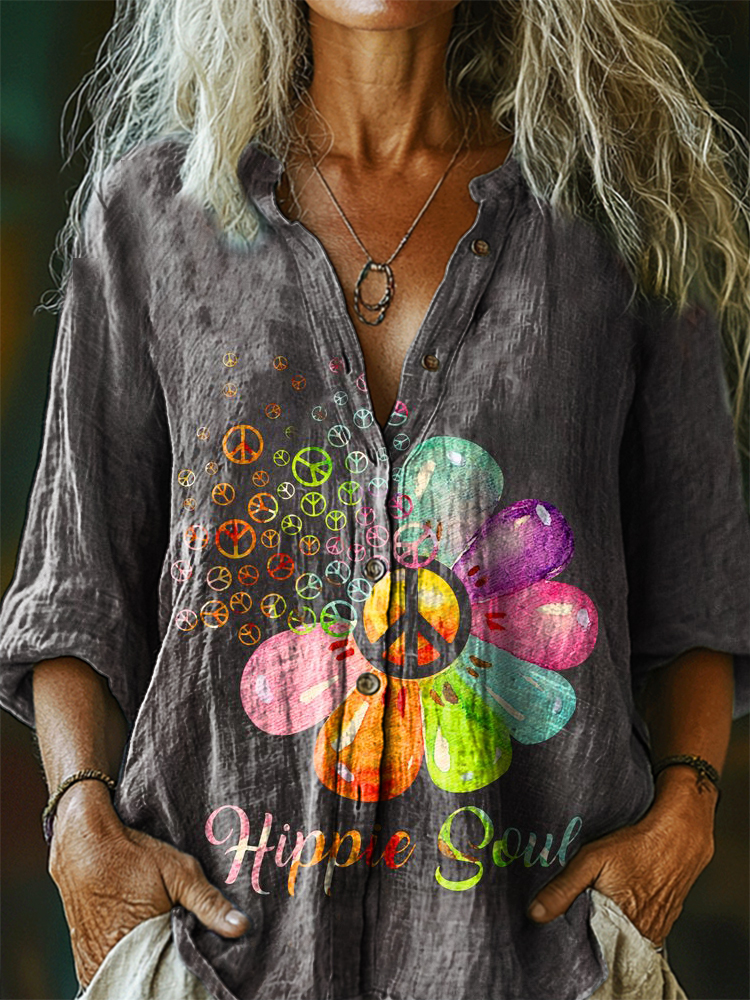 Women's Hippie Soul Art Print Casual Cotton And Linen Shirt