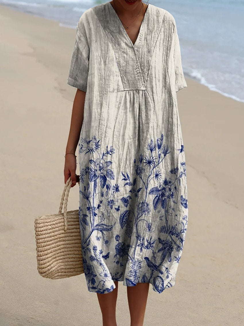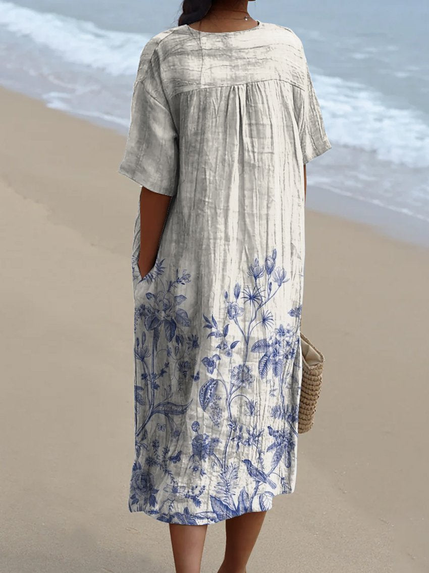 Women's Lue Floral Positioning Print Pocket Linen Dress