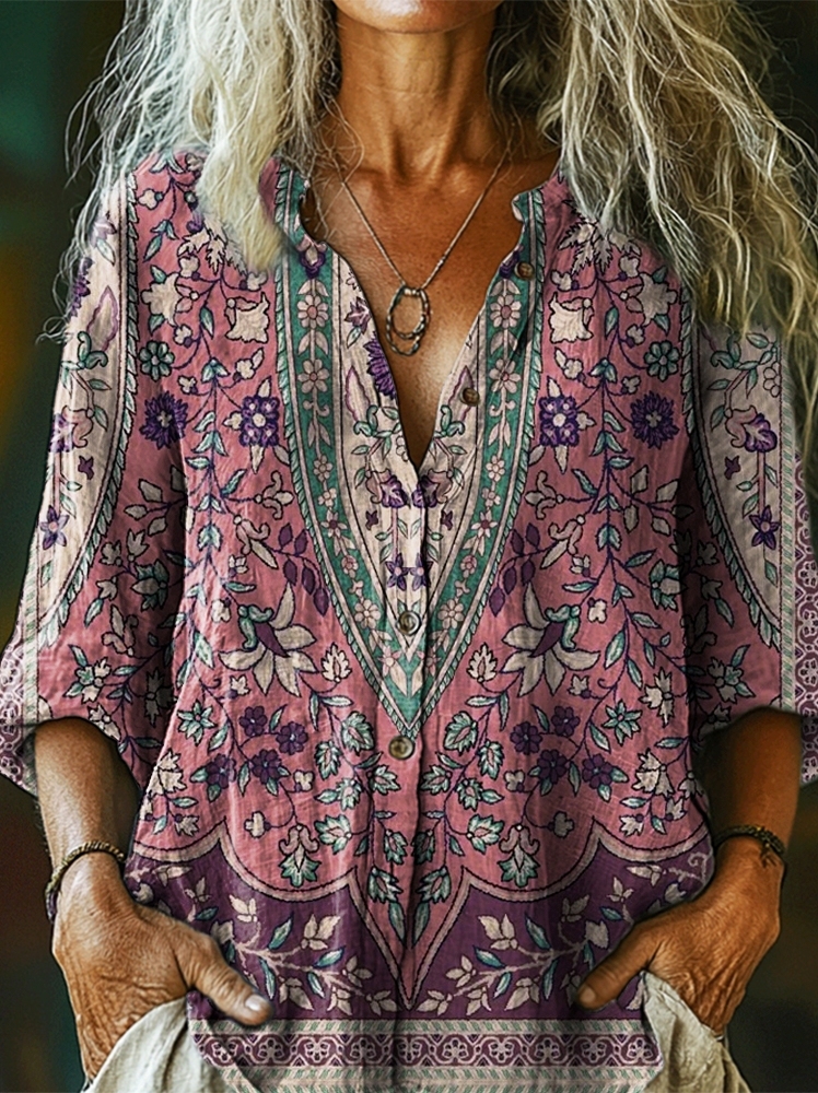 Women's National Totem Art Print Casual Cotton Linen Shirt
