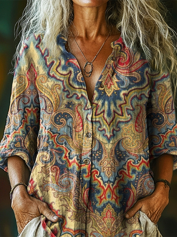 Women's National Totem Art Print Casual Cotton Linen Shirt