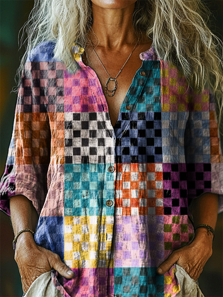 Women's Vintage Bohemian Pattern Art Print Casual Cotton Linen Shirt