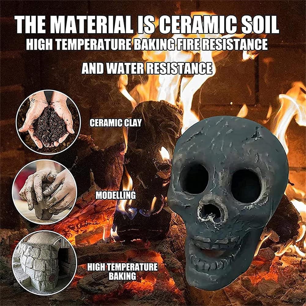 These fire pit skulls are highly detailed, hand-painted with fireproof paint, and extremely durable. Because they are handcrafted, color and dimensions will vary slightly and may discolor in wood-burning fires due to soot. They are made with heat-resistant refractory ceramic fibers with no toxins or harmful chemicals allowing a clean burn to keep your friends and family safe.
