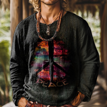 Hippie Peace Art Print Casual 100% Cotton Shirt