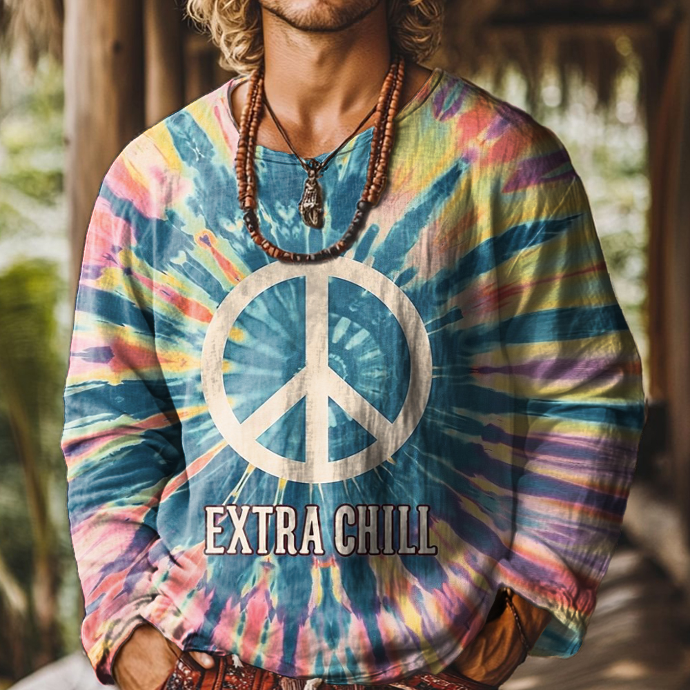 Men's Art Painting Hippie Tie-Dye Fun Print Round Neck Long Sleeve
