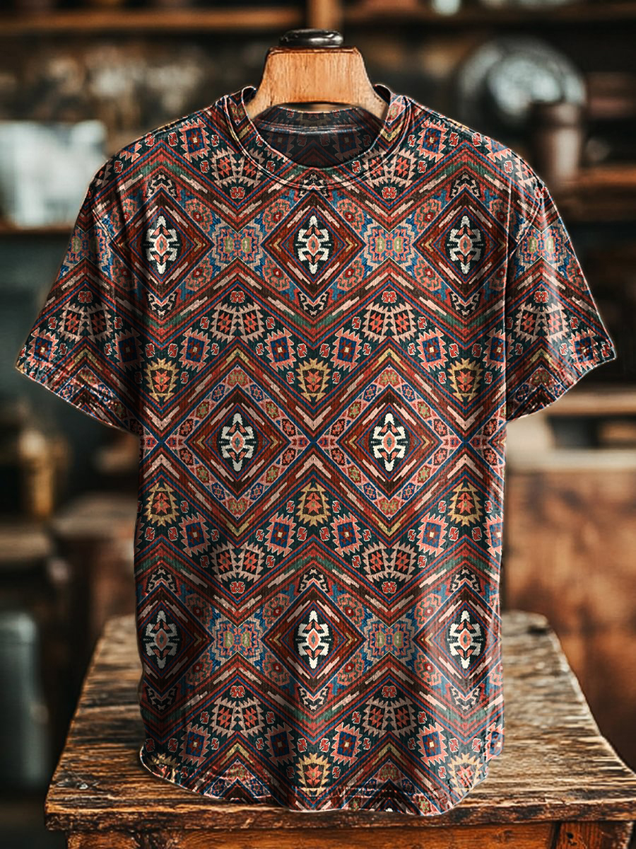 Unisex Art Painting Ethnic Style Retro Printed Round Neck T-Shirt