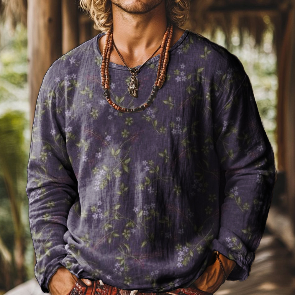 Vintage Floral Art Print Casual 100% Cotton Shirt