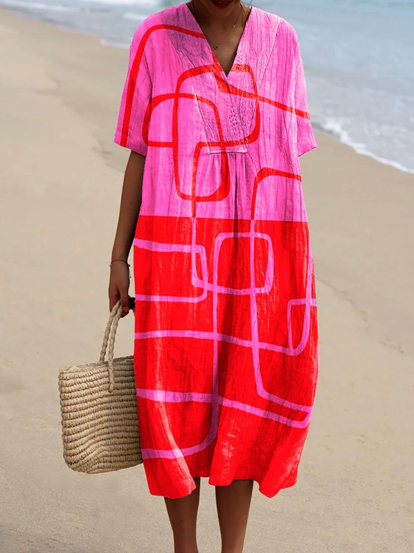 Women's Abstract Vibrant Bold Fun Colorful Geometric Stripes Art Print Flowy Dress