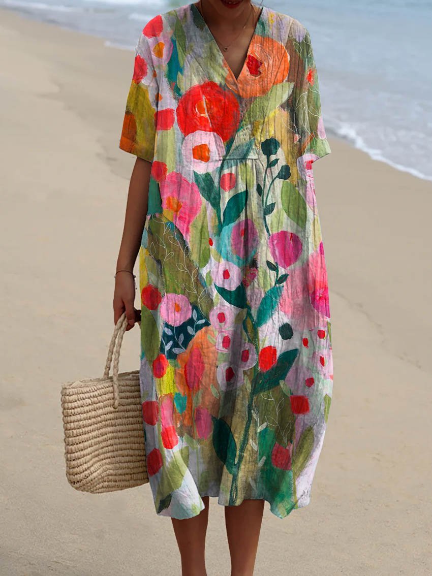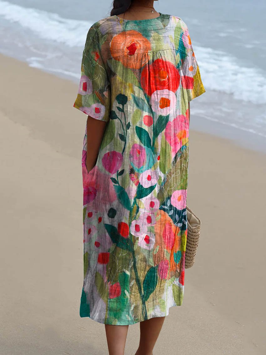 Women's Vintage Lovely Floral Art Print Flowy Dress