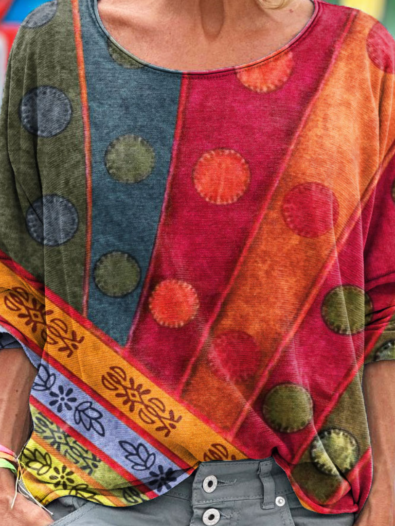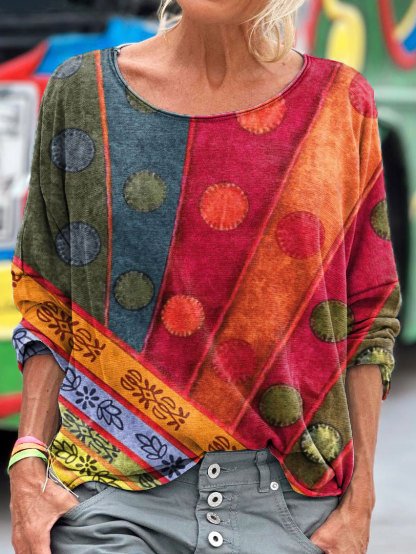 Women's Vintage Retro Art Print Casual Long Sleeve T-shirt