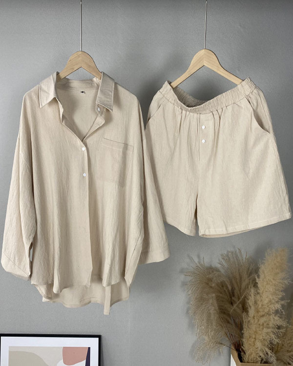 Linen Vintage Oversized Shirt Suits