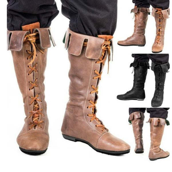 MEN'S RETRO MEDIEVAL LACE-UP CUFFED BOOTS 45332290S