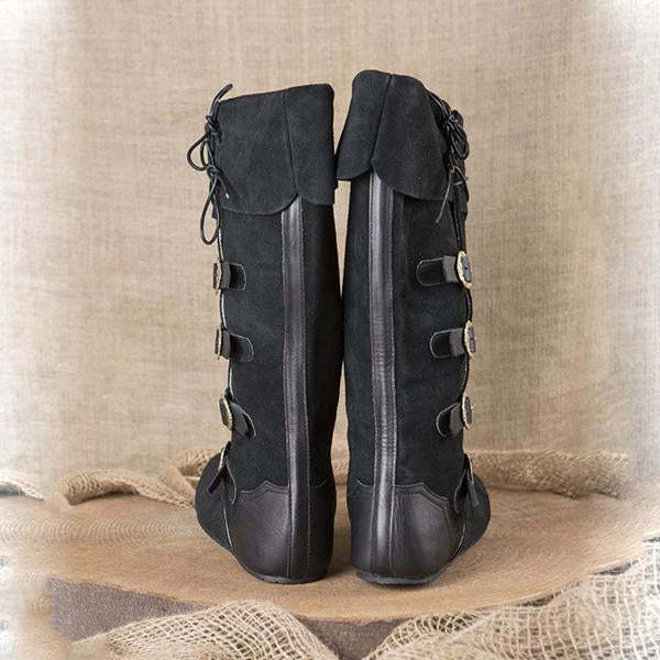 The MEN'S VINTAGE MEDIEVAL BELT BUCKLE KNEE-HIGH BOOTS are a striking blend of historical elegance and contemporary style. These boots feature a knee-high design that offers both protection and a bold silhouette. Crafted from quality leather, they boast a vintage finish that enhances their authentic medieval look. The standout feature is the decorative belt buckle, which adds a touch of character and sophistication. Ideal for reenactments, cosplay, or adding a unique flair to everyday outfits, these boots provide comfort and support for long wear. With their timeless appeal and attention to detail, they are perfect for anyone looking to channel a classic medieval aesthetic.