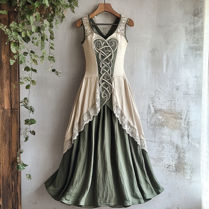 Viking Tribal Celtic Knot Art Lace Linen Tank Dress